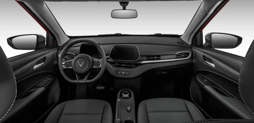 Ghế ngồi được bọc giả da cao cấp, mang lại cảm giác êm ái và dễ dàng vệ sinh – yếu tố quan trọng đối với xe vận tải thường xuyên chở nhiều hành khách. Bảng điều khiển trung tâm được thiết kế gọn gàng, tập trung vào màn hình cảm ứng 10,4 inch (dự kiến dựa trên VF 5), tích hợp hệ thống giải trí và các tính năng điều khiển thông minh. Vô-lăng bọc da, tích hợp các phím chức năng, giúp tài xế dễ dàng thao tác mà không cần rời tay.