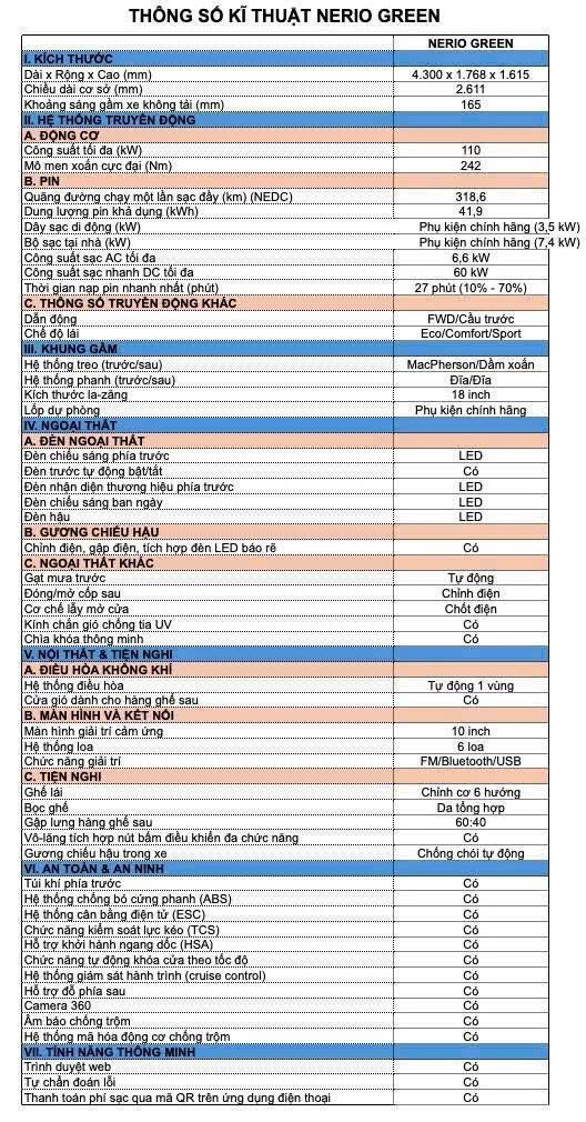 Về mặt an toàn, Nerio Green được trang bị các tính năng tiên tiến như hệ thống phanh ABS, túi khí và các công nghệ hỗ trợ lái, giúp bảo vệ hành khách trong mọi tình huống. Các chế độ lái Eco, Comfort và Sport cho phép người dùng tùy chỉnh trải nghiệm lái xe theo sở thích và điều kiện đường xá.