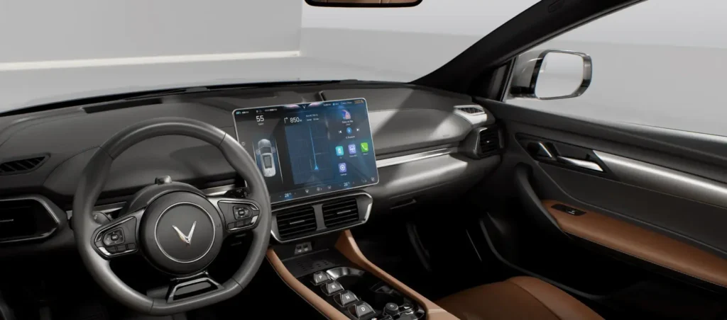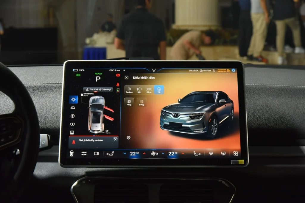 Một trong những ưu điểm ô tô điện VinFast VF 8 thế hệ mới nhận được sự chú ý của người dùng là phong cách nội thất mới mẻ với các thiết bị hiện đại như hệ thống kết nối Wifi/Bluetooth, cổng USB loại C, hệ thống 8 – 10 loa với âm thanh sống động, mang đến cho hành khách trên xe những hành trình hứng khởi. Đặc biệt, màn hình thông tin, giải trí cảm ứng cỡ lớn ở trung tâm bảng taplo có kích thước 15,6 inch, độ phân giải lớn, giảm số lượng nút bấm vật lý giúp người dùng dễ dàng theo dõi và điều khiển các tính năng trong quá trình vận hành.