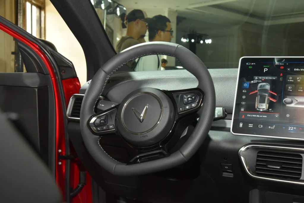 Vô lăng được thiết kế dạng 3 chấu nhỏ gọn, cắt đáy thể thao trên xe VF 8 thế hệ mới