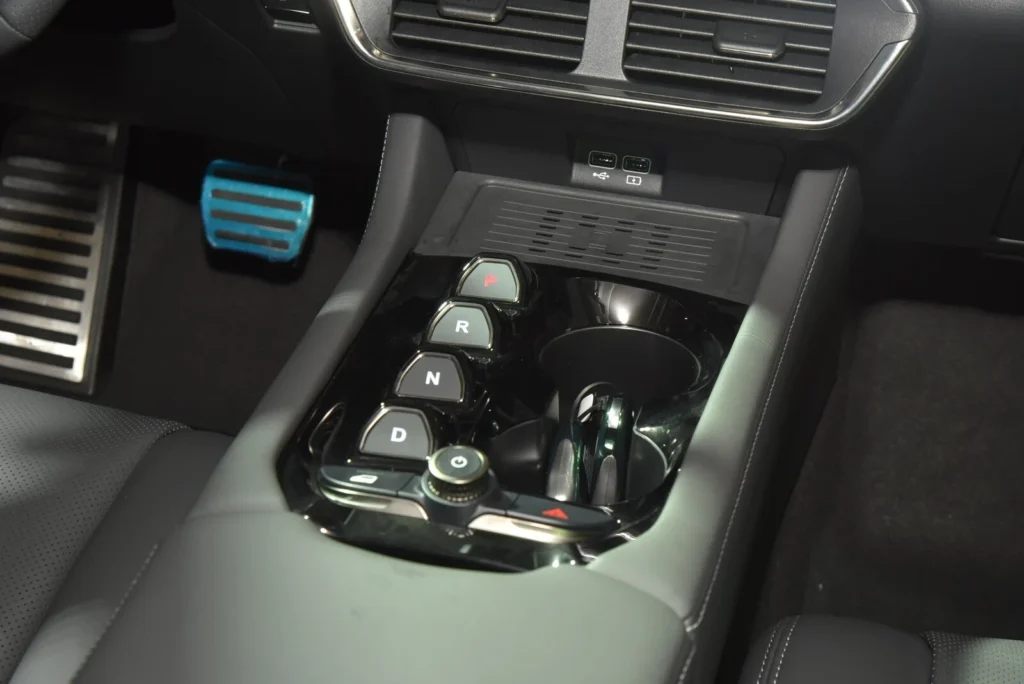 Cần số dạng nút bấm. Thiết kế bệ tỳ tay kích thước lớn có thể trở thành bàn làm việc khi cần. Hệ thống đèn viền nội thất mang đến cảm giác dễ chịu cho người ngồi đồng thời giúp tăng thêm tính sang trọng cho xe (chỉ có ở bản VF8 Lux & Lux Plus).